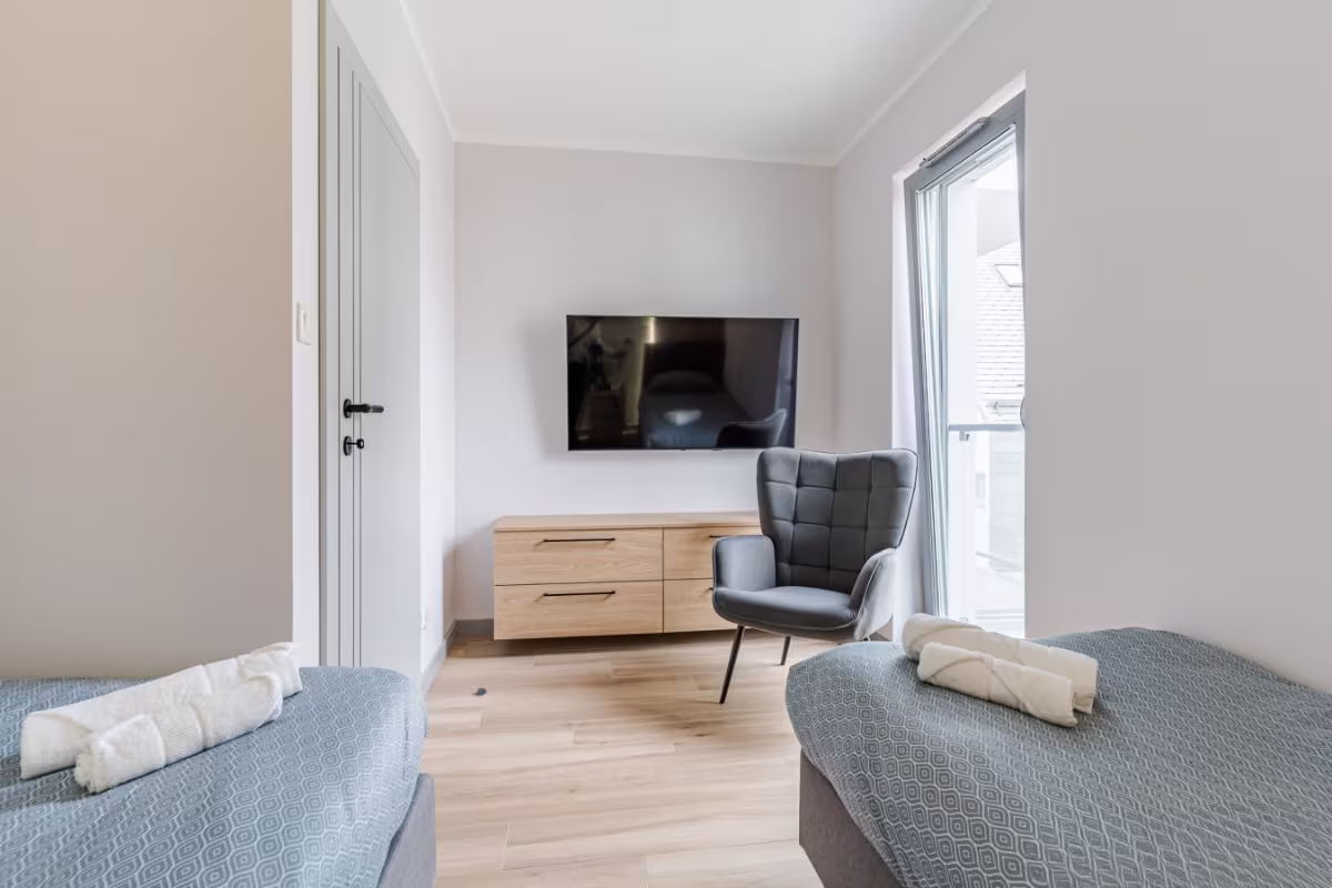 Szukasz miejsca, gdzie naprawdę odpoczniesz? Ilanel to nowoczesny 2-pokojowy apartament dla 4 osób stworzony do relaksu – blisko jeziora, z widokiem na zieleń i kojącą ciszą w tle.